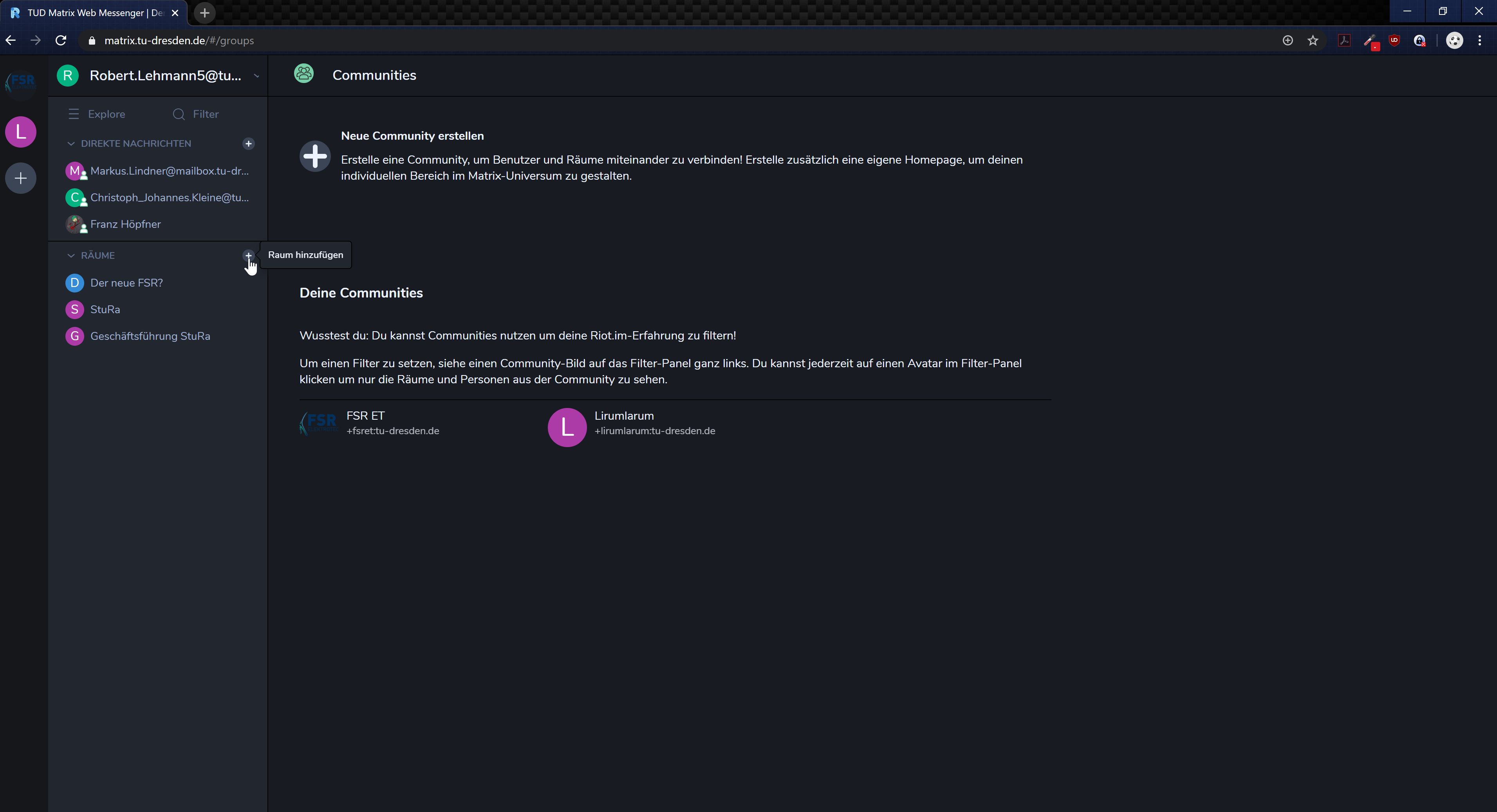 Der Zugriff zum Matrixserver der TU Dresden über die kann über die Internetseite oder die Desktop App erfolgen.